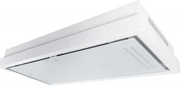 Luxus Umluft Deckenhaube mit Ionisierung in Weiß/ Weiß Glas Ausführung.